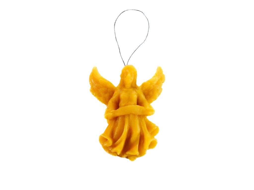 Ručně vyráběná ozdoba ve tvaru anděla z 100% včelího vosku pocházejícího z Drahanské vrchoviny. Přírodní dekorace s jemnou medovou vůní, ideální na vánoční stromek.