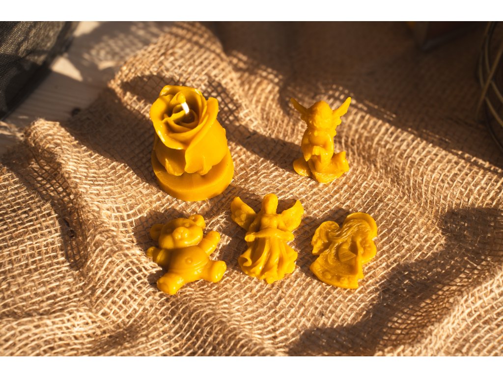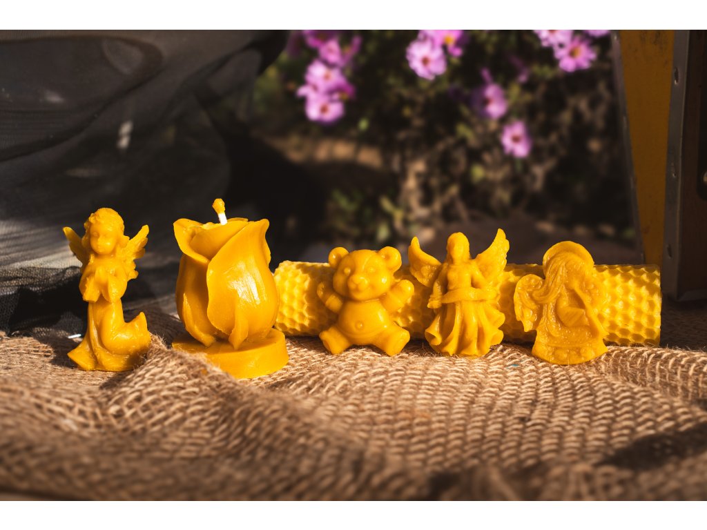 Ručně vyráběná dekorace ve tvaru medvídka z 100% včelího vosku pocházejícího z Drahanské vrchoviny. Přírodní dekorace s jemnou medovou vůní, vhodná i jako dárek pro děti.