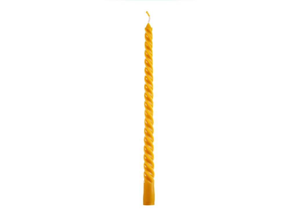 Ručně vyráběná kroucená svíčka z 100% včelího vosku pocházejícího z Drahanské vrchoviny. Přírodní produkt s jemnou medovou vůní a dekorativním vzhledem.